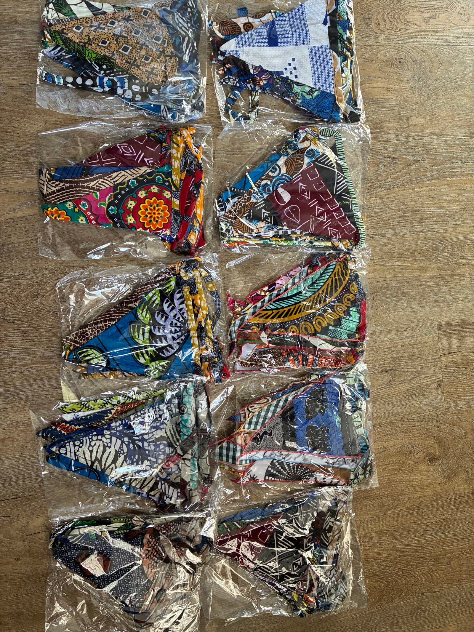 Each flag garland is unique, featuring a mix of bold prints and patterns inspired by African textiles.